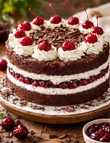 O bolo Floresta Negra é uma das sobremesas mais famosas do mundo. Conhecido pelo contraste entre chocolate, chantilly e cerejas, ele combina sabor intenso com uma apresentação elegante.