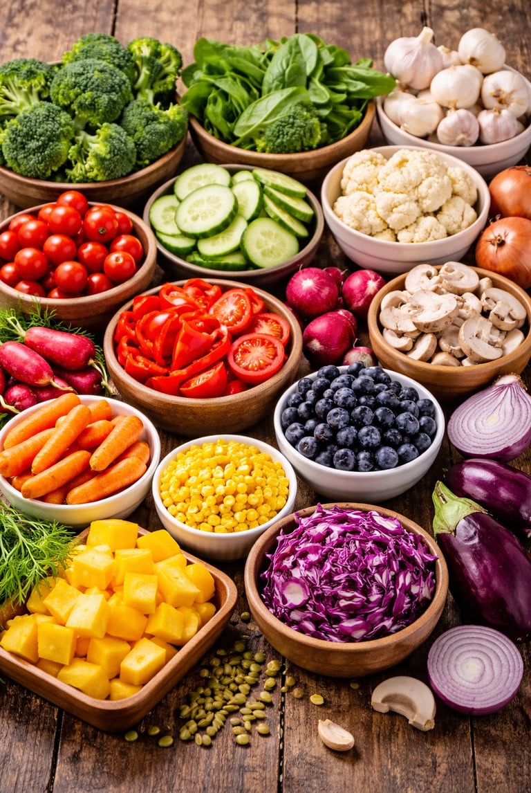 Ao incluir vegetais verdes, vermelhos, amarelos, roxos e brancos no dia a dia, você garante uma dieta mais completa e rica em vitaminas, minerais e compostos protetores.