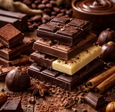 O chocolate é um alimento feito a partir das sementes de cacau, que são fermentadas, secas, torradas e moídas até formar a massa de cacau. Essa massa pode ser transformada em diferentes tipos de chocolate — como amargo, ao leite ou branco — dependendo da proporção de cacau, leite e açúcar usados. (Saboreia a Vida)